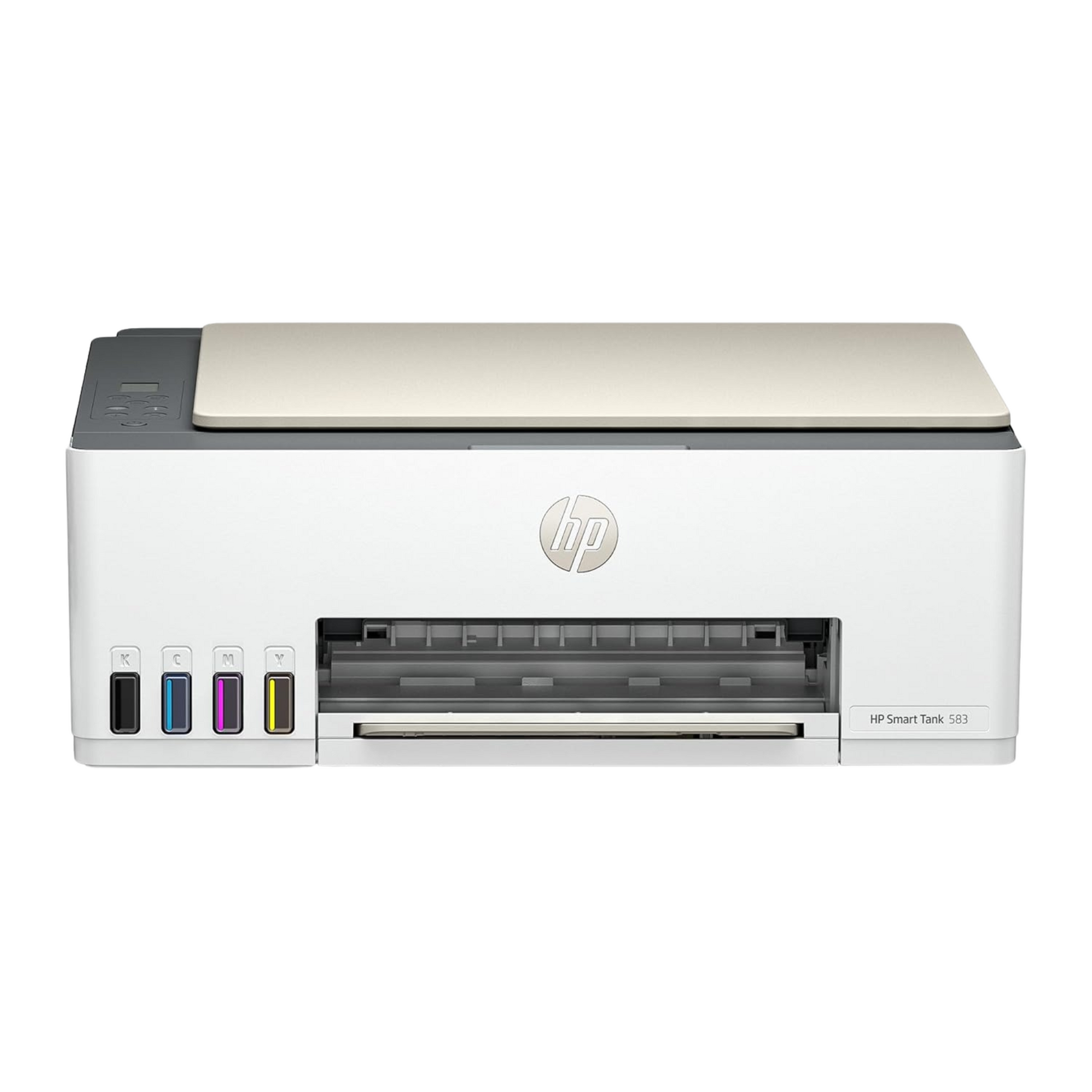 The HP Smart Tank 583 All-in-One Printer offers print, scan, and copy with sharp 1200 dpi black and vibrant 4800 dpi color output. It prints up to 12 ppm (black) and 5 ppm (color), supports Wi-Fi, Wi-Fi Direct, and USB connectivity, and works seamlessly with the HP Smart App, AirPrint, and Mopria. With a 100-sheet input tray, borderless A4 printing, 1200 dpi scanning, and low-cost refillable ink bottles, it’s compact, efficient, and ideal for home or small office use.